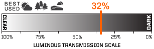 The Edge Dark Purple lens is built for medium to bright light conditions, open fields, or wooded areas. Dark Purple dampens greens and blues for contrast of orange targets against a deep blue sky and green background.